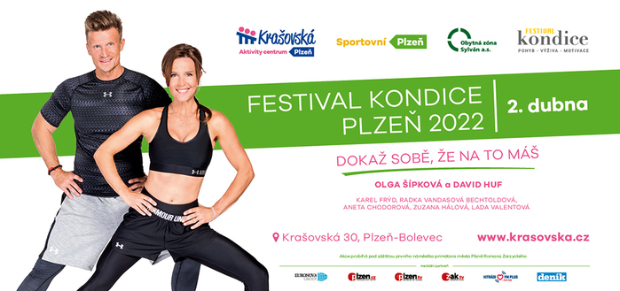 Událost, která nemá na západě Čech obdoby. To je Festival kondice 2022! Těšte se na mistry světa ve sportovním aerobiku Olgu Šípkovou a Davida Hufa, ale i na známé nejen plzeňské lektory.