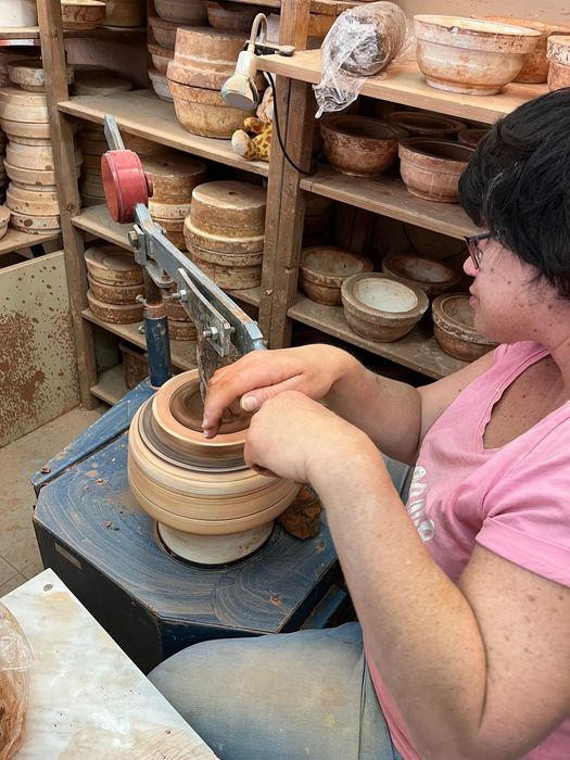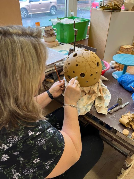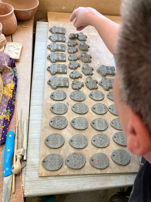 Právě v naší keramické dílně tvoříme výrobky s velikonoční tématikou, dekorativní koule, hrnečky, misky,